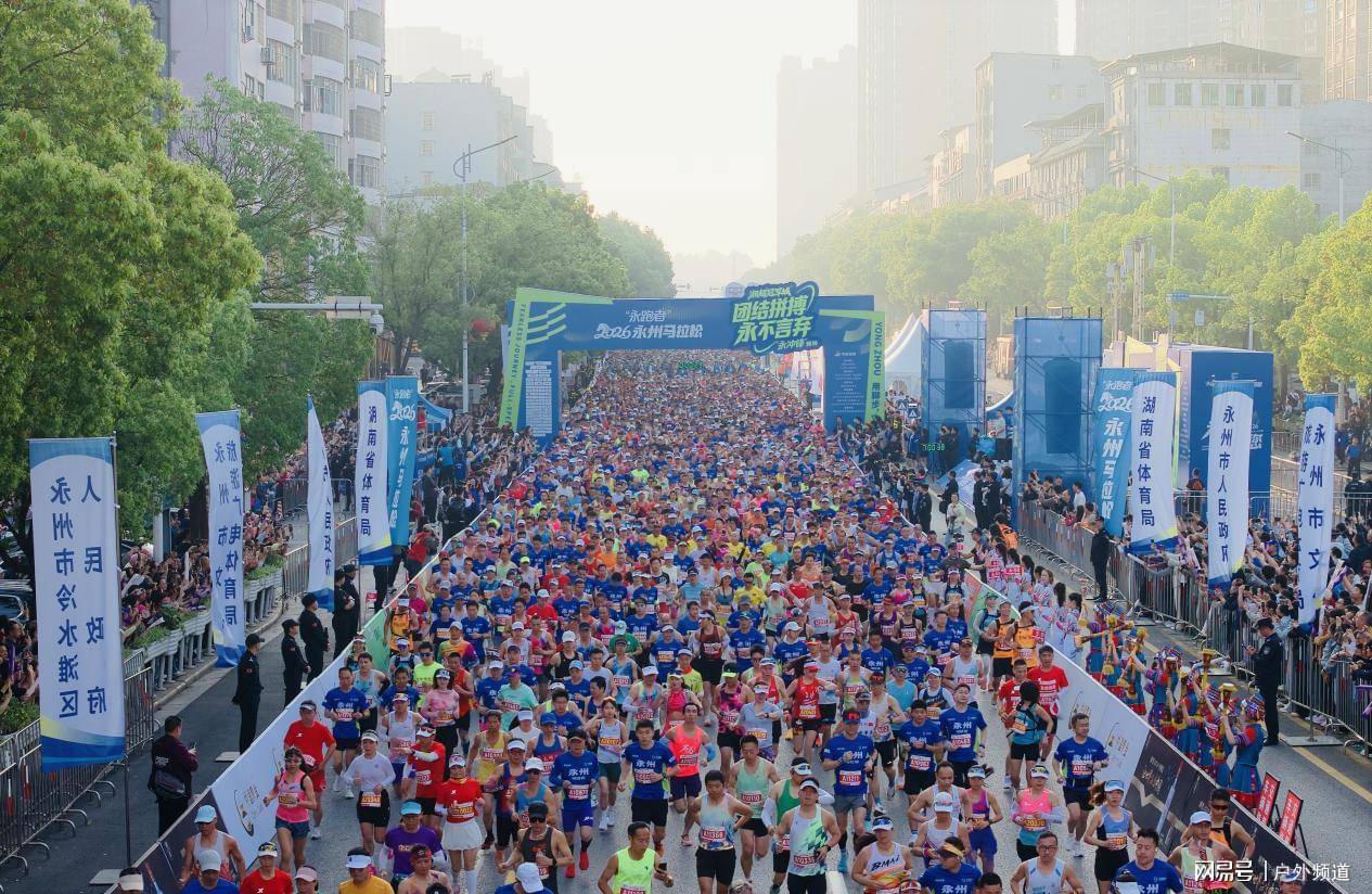 4月19日,“永跑者”2026永州马拉松在湖南省永州市冷水滩区激情开跑。来自五湖四海的10000名跑者齐聚“湘超冠军之城”永州,奔跑在“一江两岸”最美赛道,用脚步丈量古城新韵,用汗水诠释拼搏精神,点燃城市活力。